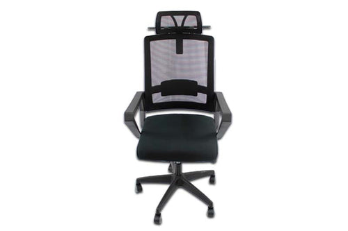 Silla gerencial MODAMOB IRIS, respaldo y cabecera de malla, piston de altura, reposabrazos, soporte espalda